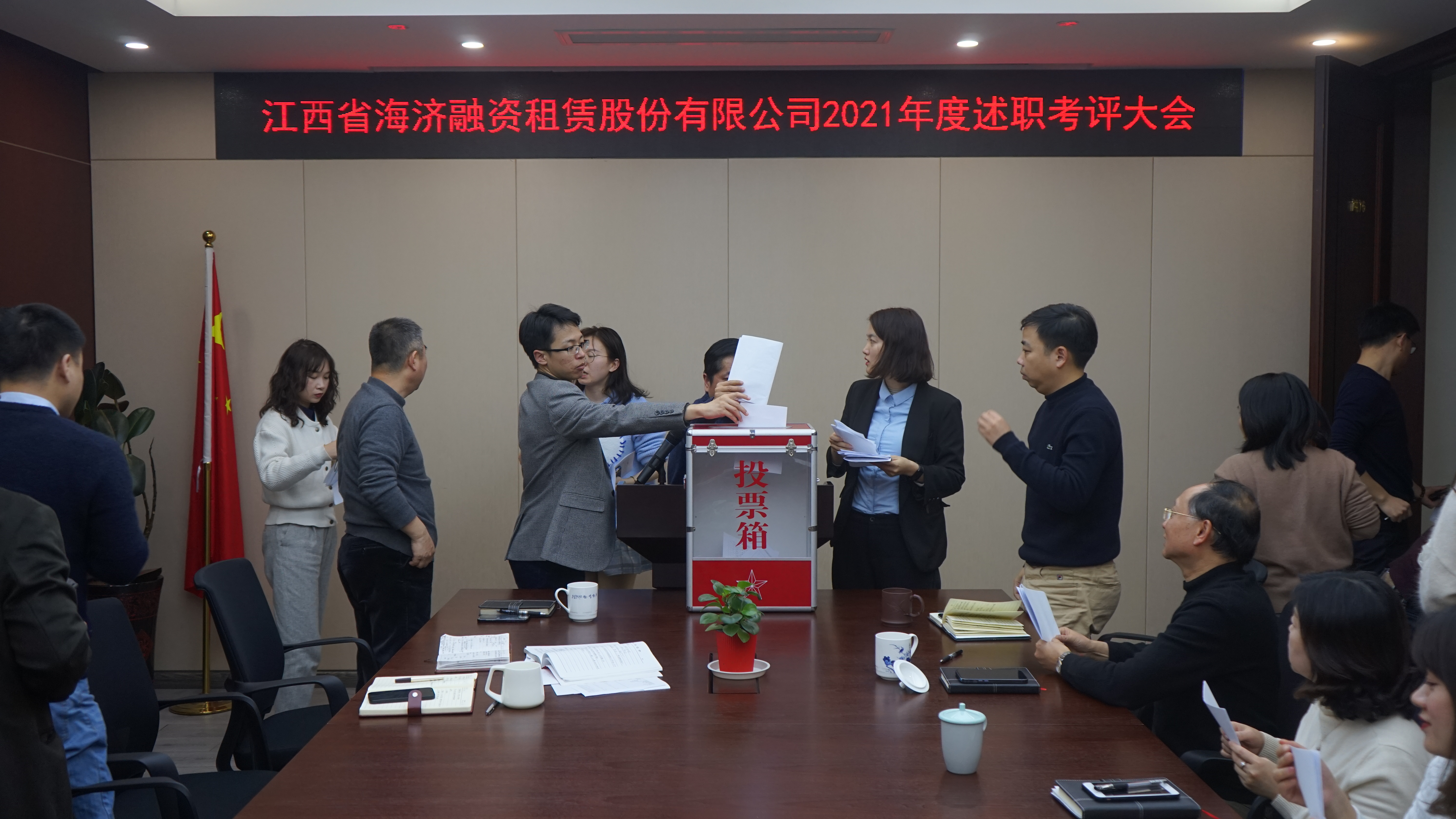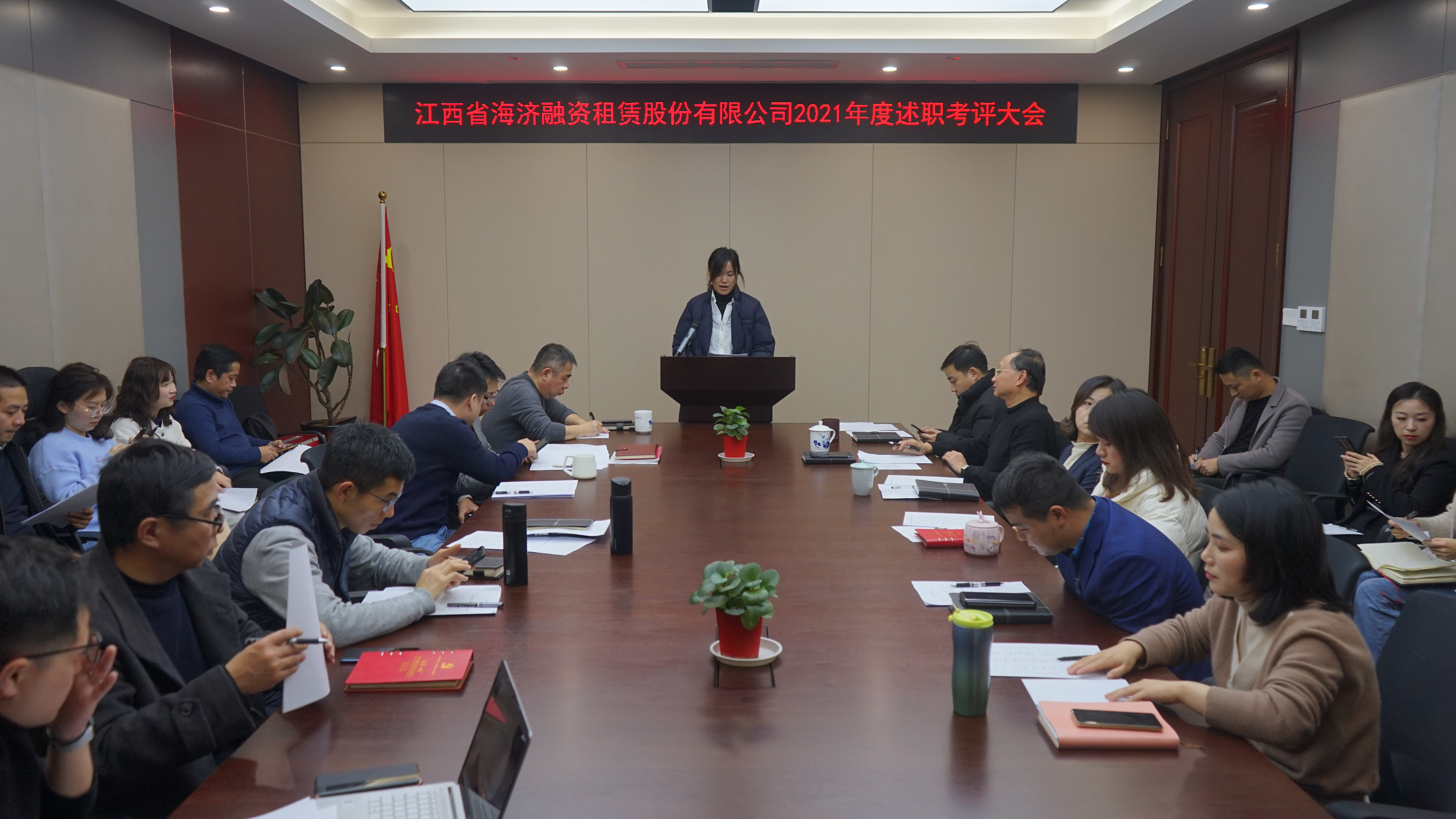 ? ? ? 為公正、客觀、全面地總結(jié)2021年度工作情況,強(qiáng)化員工責(zé)任和目標(biāo)意識(shí),不斷增強(qiáng)公司整體競(jìng)爭(zhēng)力。1月20日,江西省海濟(jì)融資租賃股份有限公司召開2021年度職工述職考評(píng)大會(huì)。公司董事長黃偉、總經(jīng)理劉閩江及全體員工參加會(huì)議。