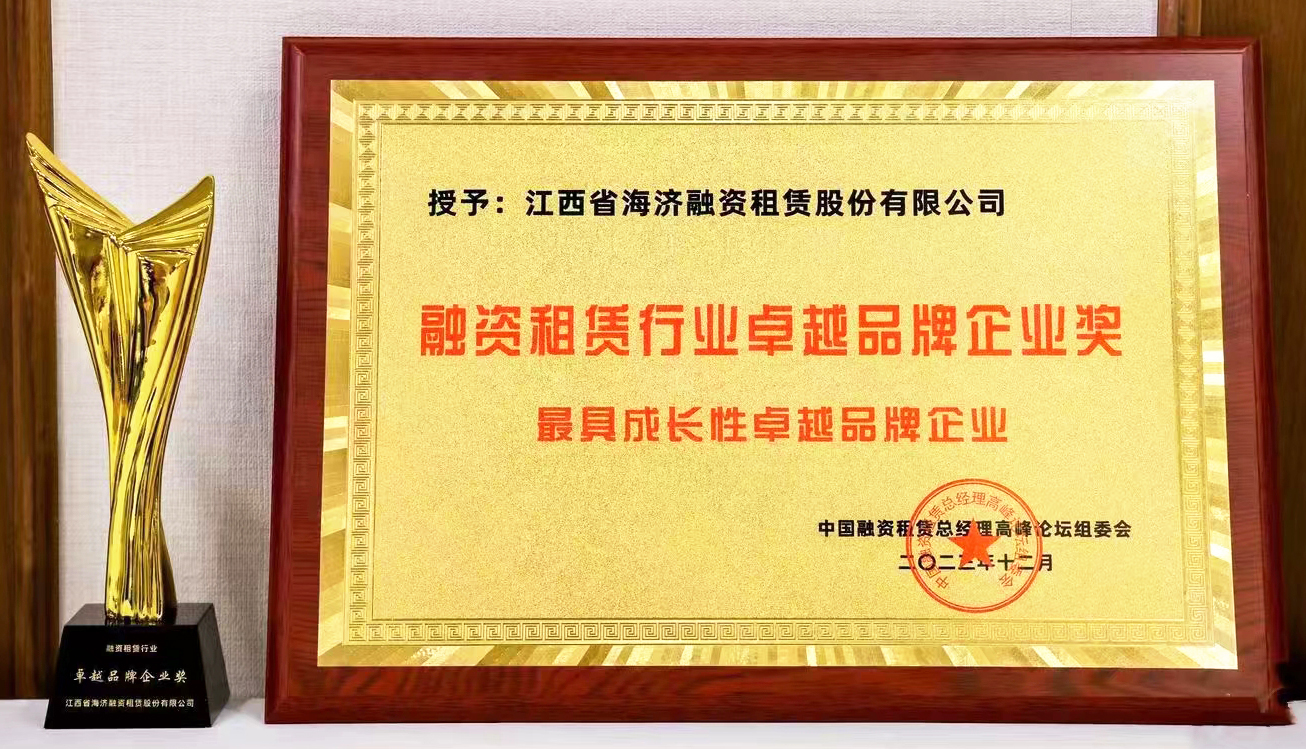 ? ? ? 12月21日,“2023中國(guó)融資租賃總經(jīng)理論壇金鼎獎(jiǎng)?lì)C獎(jiǎng)盛典”在北京順利召開,江西省海濟(jì)融資租賃股份有限公司憑借優(yōu)秀的品牌建設(shè)、專業(yè)的品牌管理和極具成長(zhǎng)的品牌價(jià)值,榮獲融資租賃行業(yè)卓越品牌企業(yè)獎(jiǎng)。