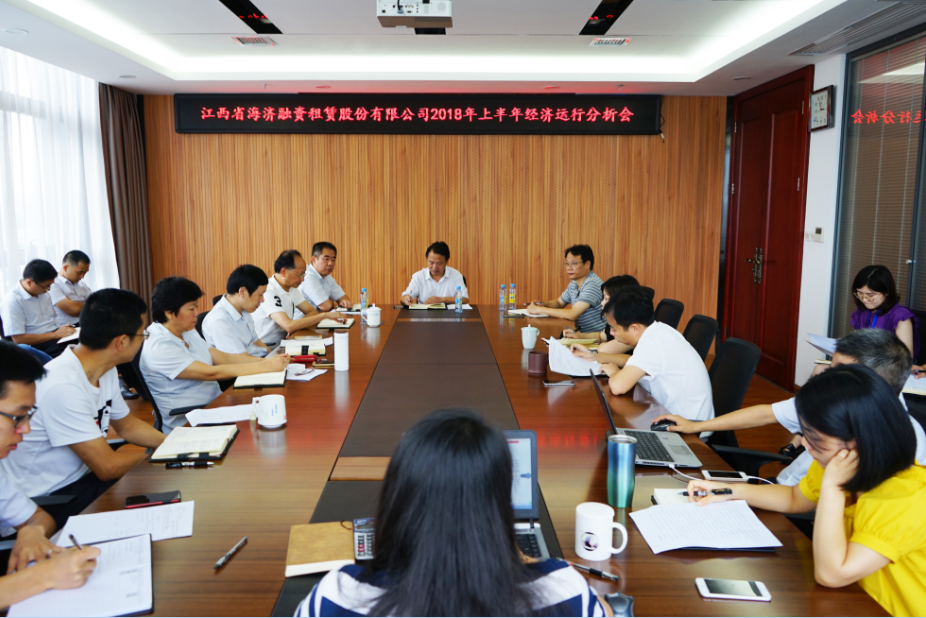 ????? 2018年7月6日,江西省海濟融資租賃股份有限公司召開2018年上半年經濟運行分析會。會議全面總結了2018年上半年經營管理工作,通過認真分析研判當前形勢,查找經濟運行中存在的不足,進一步明確下半年的各項工作目標和措施。集團公司黨委副書記、總經理、海濟公司董事長柳習聰同志到會并作了總結講話,集團公司經營管理部揭曉東部長出席會議。
