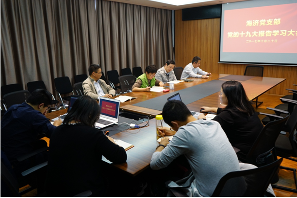 ? ? 為認(rèn)真學(xué)習(xí)貫徹十九大會(huì)議精神,海濟(jì)公司黨支部以黨小組為單位,組織全體黨員、積極分子對(duì)習(xí)近平總書(shū)記《全面建成小康社會(huì),奪取新時(shí)代中國(guó)特色社會(huì)主義偉大勝利》的報(bào)告進(jìn)行了學(xué)習(xí)討論,大家積極發(fā)言,暢談所學(xué)、所想、所悟,紛紛表示要把黨中央的治國(guó)方針同公司的實(shí)際情況緊密結(jié)合,科學(xué)有效的規(guī)劃公司未來(lái)發(fā)展的目標(biāo),立足本崗,做出更好的成績(jī)。
