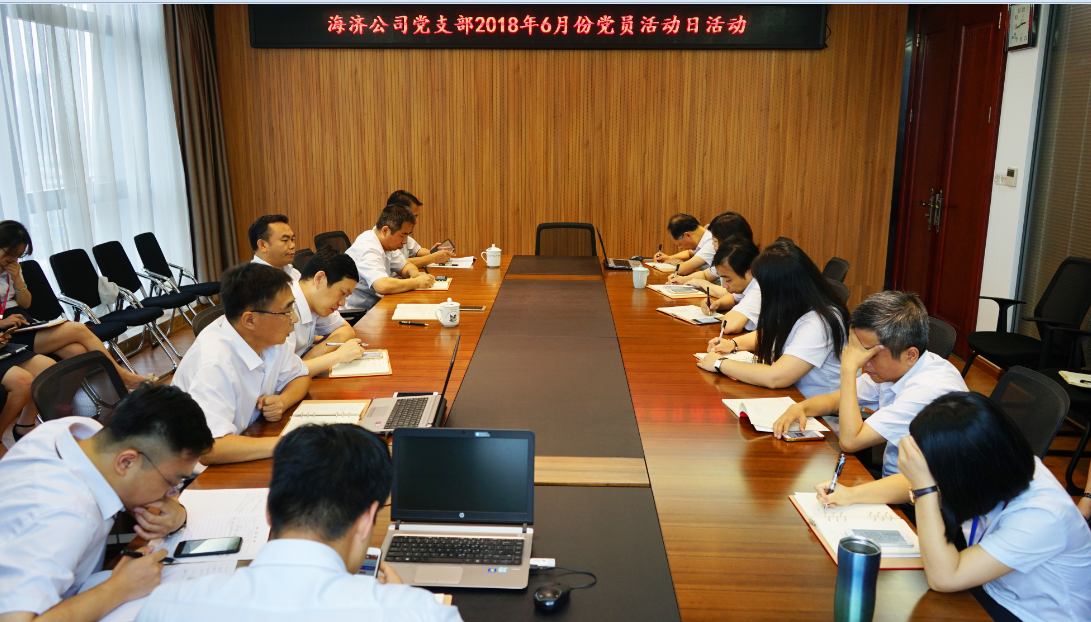 ????? 2018年6月20日下午,海濟(jì)黨支部例行開展了“不忘初心、牢記使命”主題黨員活動(dòng)日活動(dòng)?;顒?dòng)內(nèi)容包括傳達(dá)文件精神、通報(bào)組織發(fā)展情況、集中理論學(xué)習(xí)、專業(yè)操作實(shí)務(wù)講座、現(xiàn)場(chǎng)繳納黨費(fèi)等。集團(tuán)公司黨委副書記、總經(jīng)理、海濟(jì)公司董事長(zhǎng)柳習(xí)聰同志參加活動(dòng)。