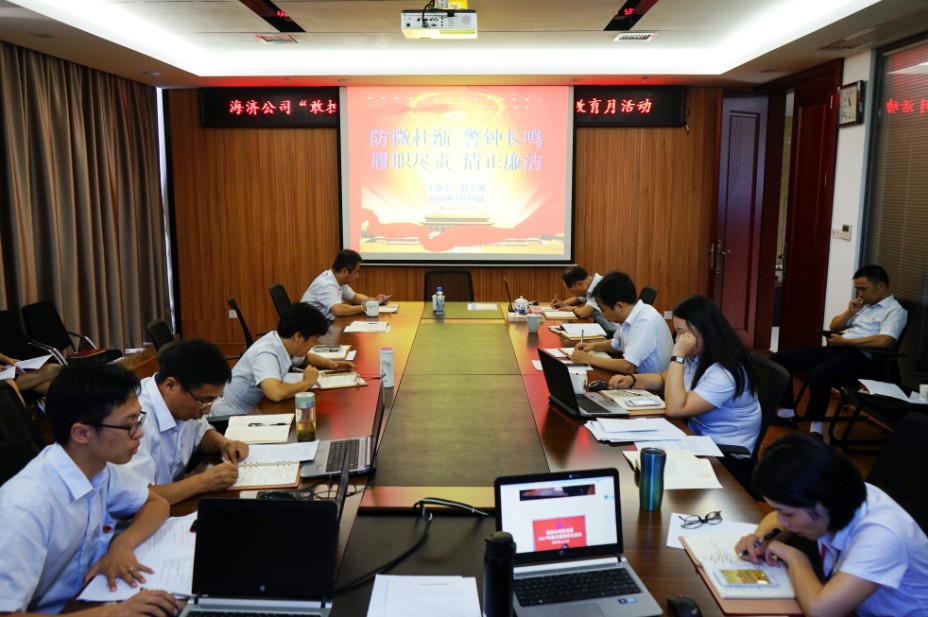 ????? 七月是光輝之月,七月是紅色之月。7月19日,海濟黨支部開展了以“學(xué)典型、讀紅書、踐初心”為主題、以反腐倡廉宣傳教育為重要內(nèi)容的黨員活動日活動?;顒硬扇〖欣碚搶W(xué)習(xí)、傳達文件精神、專題黨課教育、微黨課學(xué)習(xí)、開展研討和討論等方式學(xué)理論、學(xué)先進、學(xué)英烈、找差距、抓作風(fēng)、控風(fēng)險,歷時整整一天。集團公司黨委副書記、總經(jīng)理、海濟公司董事長柳習(xí)聰同志參加活動。