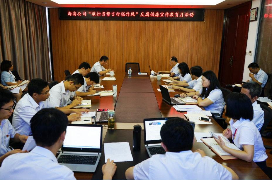 ?????? 一是匯“廉”言成片。公司組織黨員干部職工創(chuàng)作反腐倡廉警句,共收集各類廉潔格言警句30條,并將其與廉政文化、新中國(guó)反腐之路、廉潔自律準(zhǔn)則、紀(jì)律處分條例、反腐倡廉基本經(jīng)驗(yàn)和歷史啟示等內(nèi)容一起制作了“反腐倡廉、糾風(fēng)整紀(jì)”宣傳教育視頻,在大屏幕滾動(dòng)播放供員工反復(fù)觀看,公司高管辦公室統(tǒng)一擺放了廉言警句宣傳牌,還擇優(yōu)選取了員工創(chuàng)作的8個(gè)廉潔格言警句參與集團(tuán)公司的評(píng)比,“小廉言”發(fā)揮了宣傳教育的“大智慧”作用。