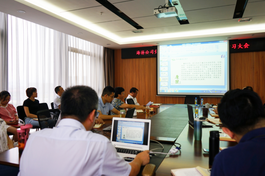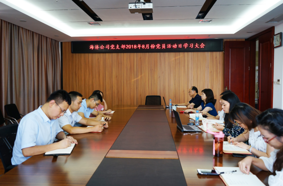 2018年8月10日下午,海濟(jì)公司黨支部組織開(kāi)展了以“學(xué)理論、強(qiáng)作風(fēng)、提能力,為實(shí)現(xiàn)高質(zhì)量發(fā)展作貢獻(xiàn)”為主題的月度黨員活動(dòng)日活動(dòng),通過(guò)集中理論輔導(dǎo)、學(xué)習(xí)省委全會(huì)精神、專(zhuān)題廉潔黨課、形勢(shì)與任務(wù)教育、職業(yè)素養(yǎng)學(xué)習(xí)、黨支部書(shū)記點(diǎn)評(píng)、紅色故事微黨課、黨小組討論、現(xiàn)場(chǎng)繳納黨費(fèi)等方式不斷強(qiáng)化理論武裝和意識(shí)形態(tài)工作,為推進(jìn)經(jīng)營(yíng)活動(dòng)上臺(tái)階和高質(zhì)量發(fā)展提供思想保證。集團(tuán)公司黨委副書(shū)記、總經(jīng)理、海濟(jì)公司董事長(zhǎng)柳習(xí)聰同志參加活動(dòng)。